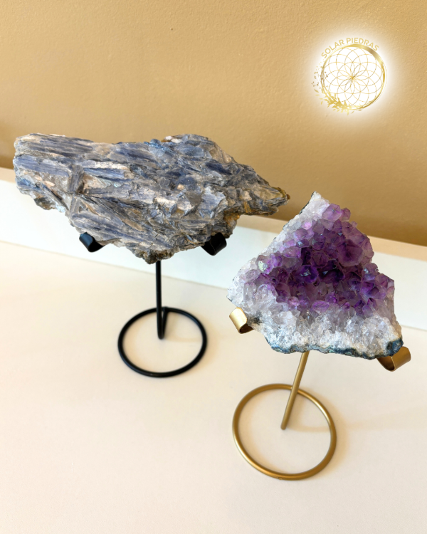 Su diseño proporciona una base sólida y segura, permitiendo exhibir tus piezas de manera óptima, ya sea en hogares, vitrinas, locales, ferias o eventos especiales. La estructura del soporte facilita el acceso y la visualización de cada mineral, asegurando que cada detalle brille y atraiga la atención.