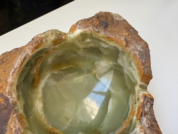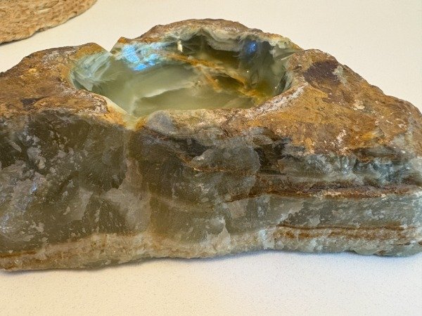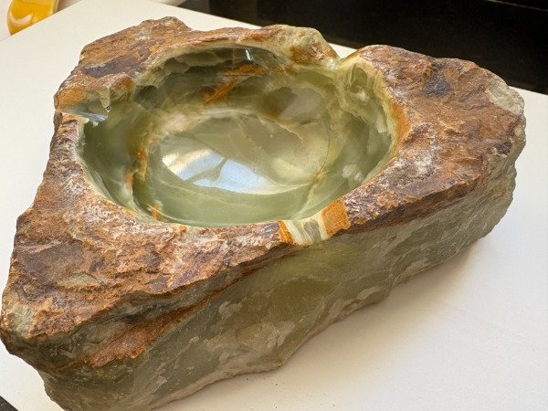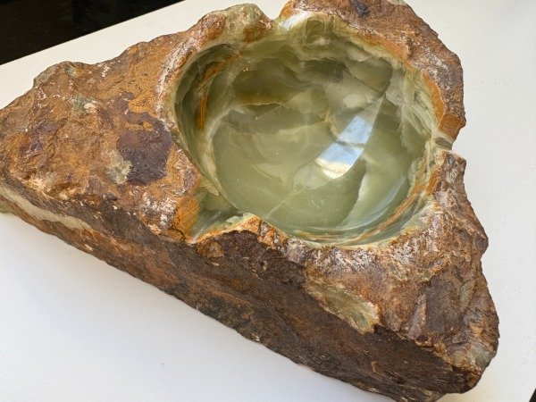 Medidas del triangulo 17 x 16 cm., medidas del circulo interno pulido 9 cm de diametro, altura 6 cm